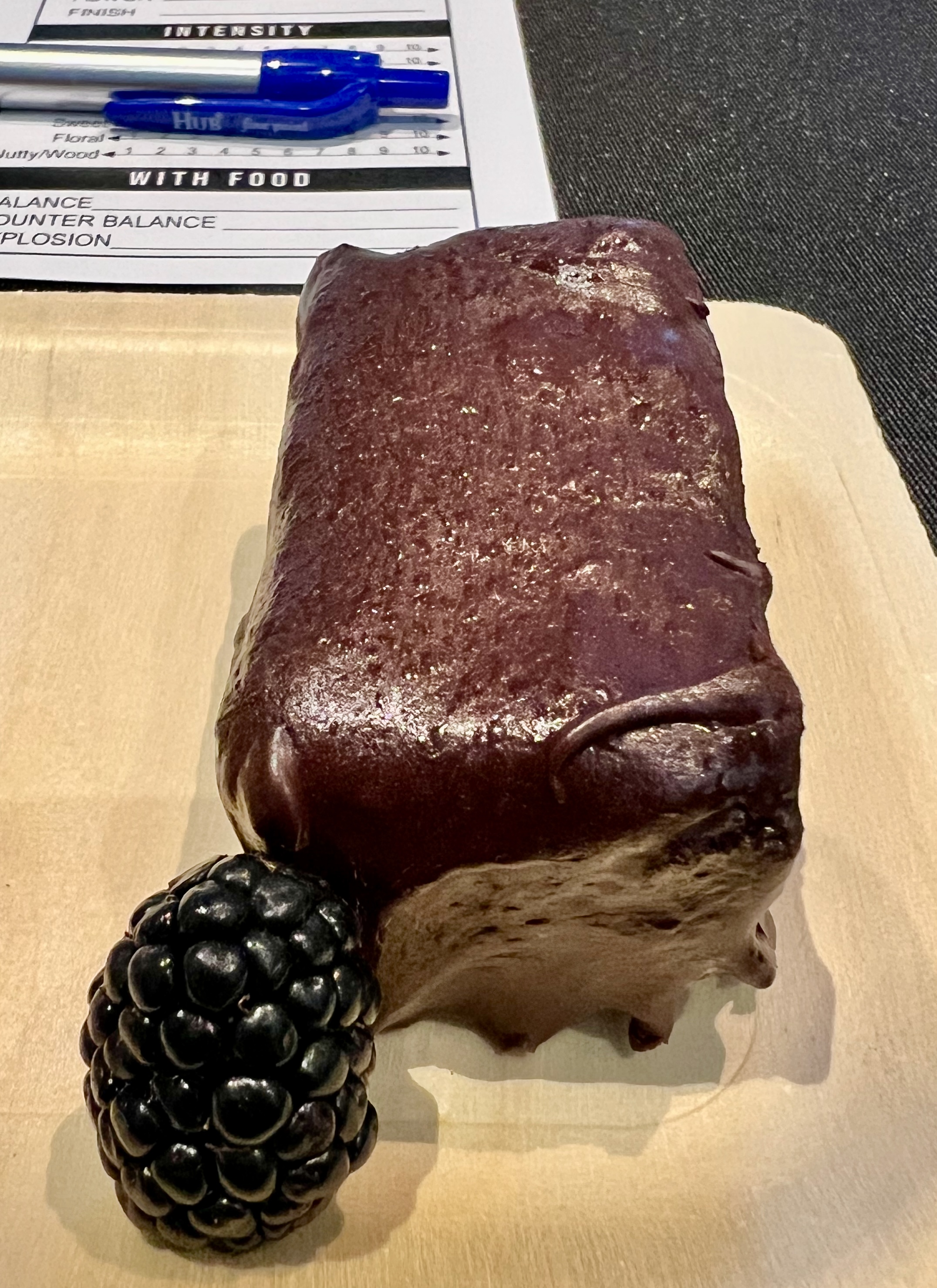 Tasted with a pecan – Baking chocolate and a luscious oakiness. The fruit notes are gone but replaced with hints of cinnamon and black pepper. It is very good.