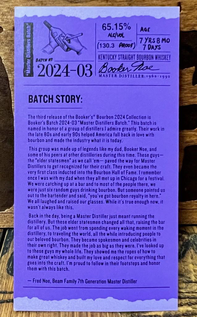 Mashbill – 70% Corn, 16% Wheat, 14% Malted Barley Age – NAS, as least 4 years by rule. Release – Lost Recipe Series 2024, Ed 01 Proof – 111.9 Price Paid – $51.99 (plus tax)
