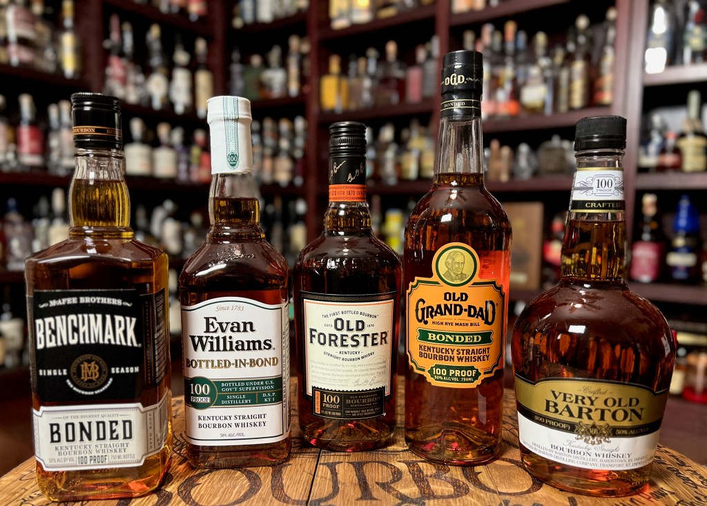 Bottled-in-Bond: must be produced in a single distillation season by a single distillery; must mature in a U.S. bonded warehouse for a minimum of four years; and the aged spirit must be bottled at 50% ABV (100 proof). For additional information on Bottled-in-Bond requirements, please read this post – Bottled in Bond.