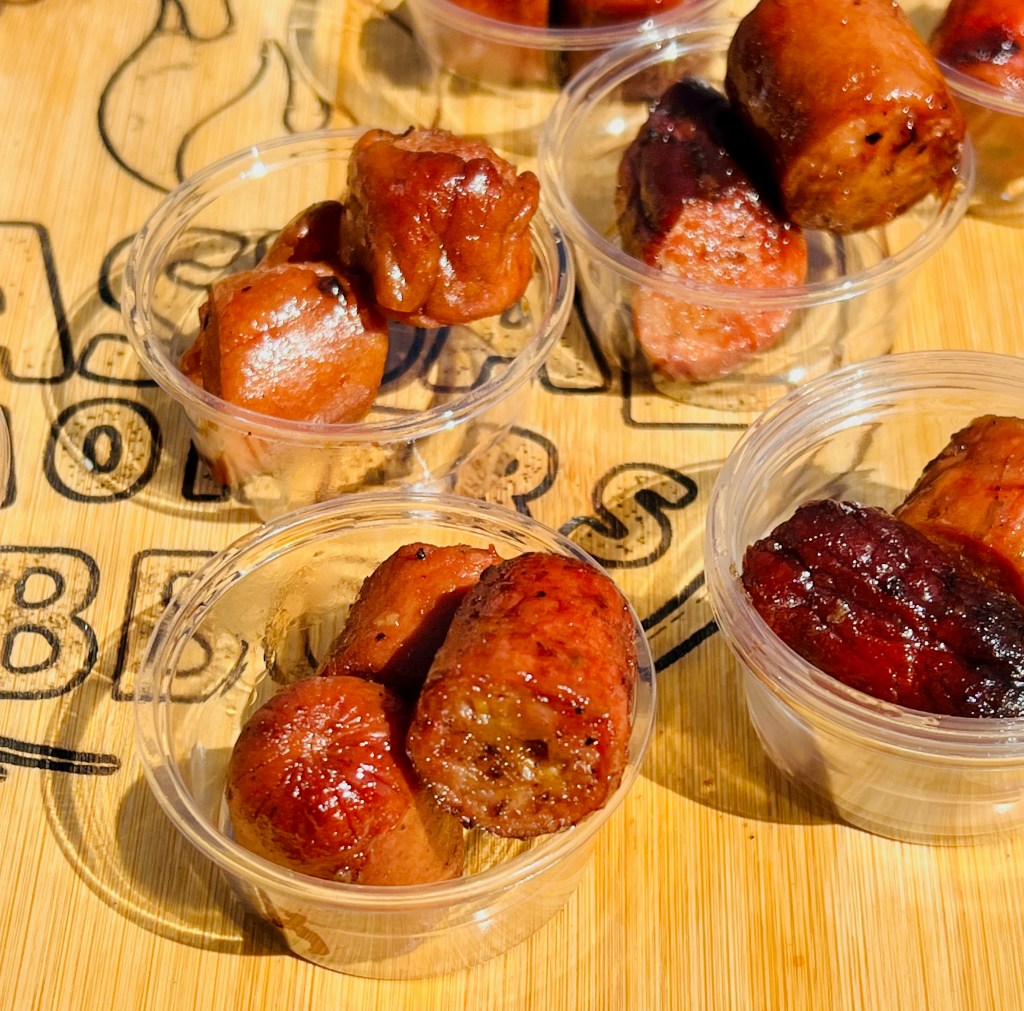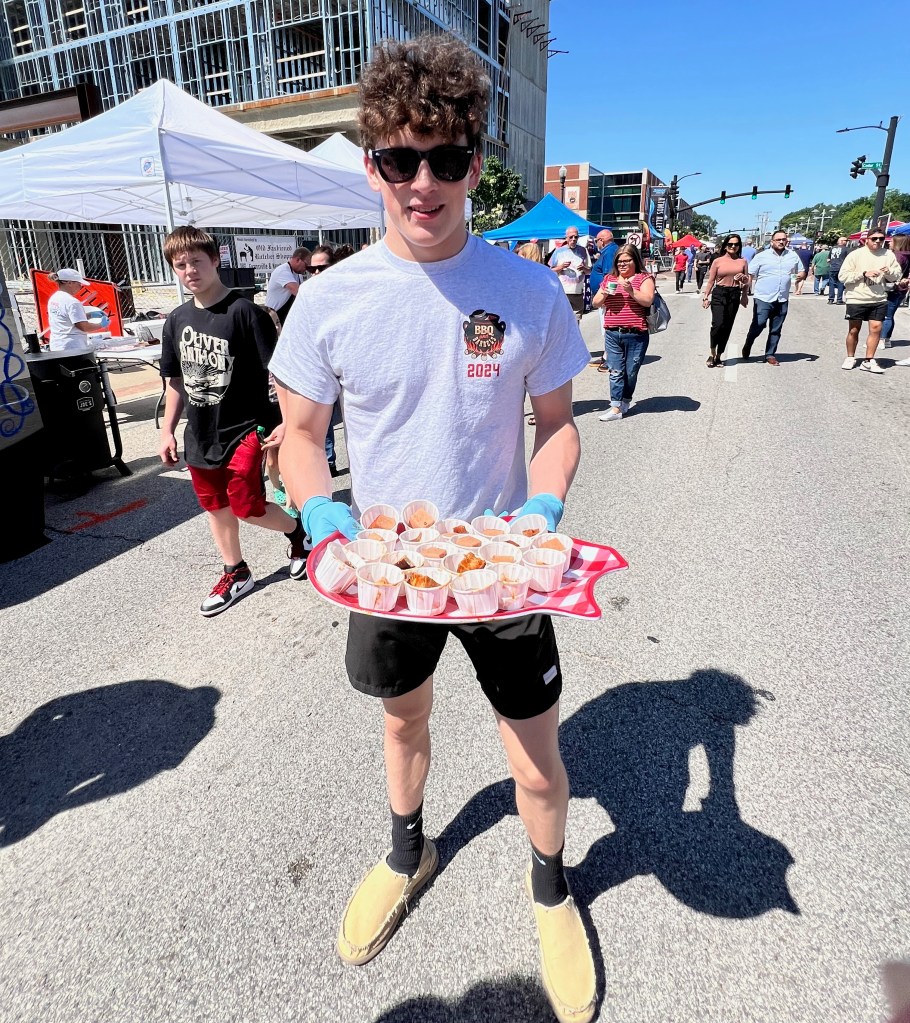 Saturday we had the opportunity to sample from the various competition teams. So many yummy bites of smoked chicken, pork, bologna, ham, sausage, venison, etc. It is amazing how full you can get sampling with a toothpick!