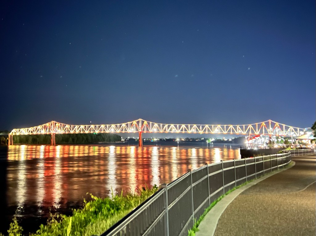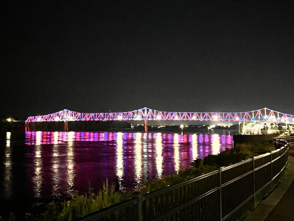 The Glover Cary Bridge (also known as the Blue Bridge) connecting Indiana to Owensboro KY always has an amazing light display.